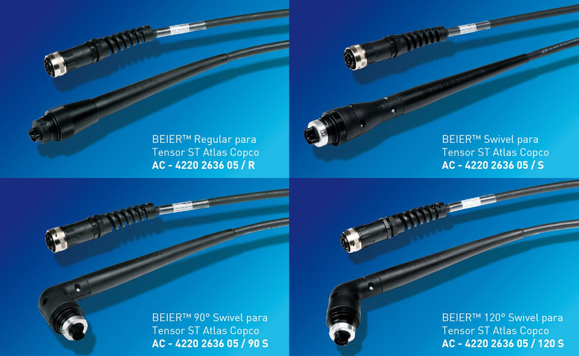 La ilustración de las diferentes versiones se realiza aquí por medio de un cable de repuesto BEIER™ alto rendimiento para herramientas ATLAS COPCO Tensor ST.