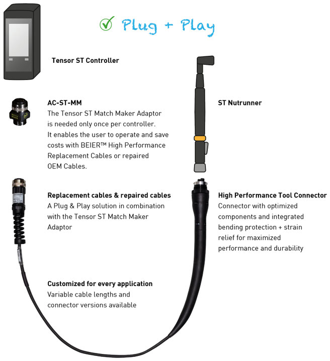 With BEIER™ High Performance Cables for Tensor ST you can replace the following ATLAS COPCO Part Numbers: