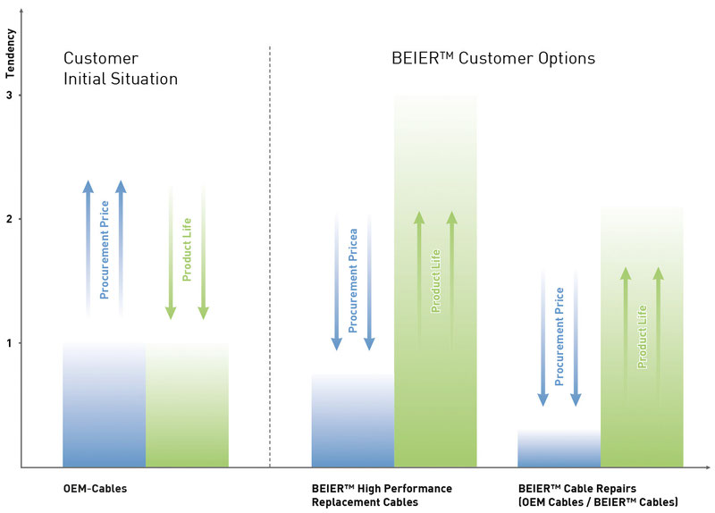 use repaired OEM cables with up to twice the product life or BEIER™ High Performance Replacement Cables with a product life of up to three times greater.